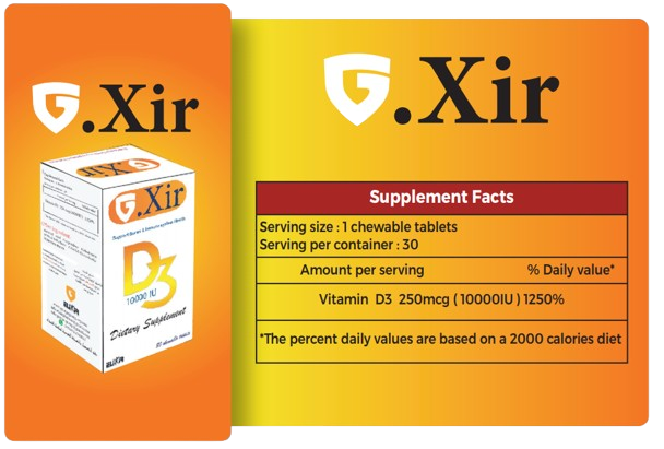 This product is formulated to support bone and immune system health, with each serving consisting of one chewable tablet. The container holds 30 servings, and the ingredients include mannitol, avicel, crospovidone, maltodextrin, artificial fruity flavor, colloidal silicon dioxide, and magnesium stearate. The recommended dosage is one tablet per day. To maintain its quality, the product should be stored in a dry place at a temperature not exceeding 30°C. Each carton contains 308 tablets, offering a long-lasting supply for consistent daily use.